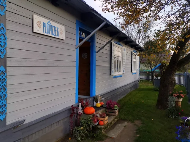 Zapraszam Was do magicznego drewnianego domku z tradycyjnymi podlaskimi okiennicami. Plutycze słyną właśnie z takich kolorowych domków i zdobionych okiennic, drewnianych ornamentów nad oknami i na węgłach oraz ze specyficznej zabudowy.